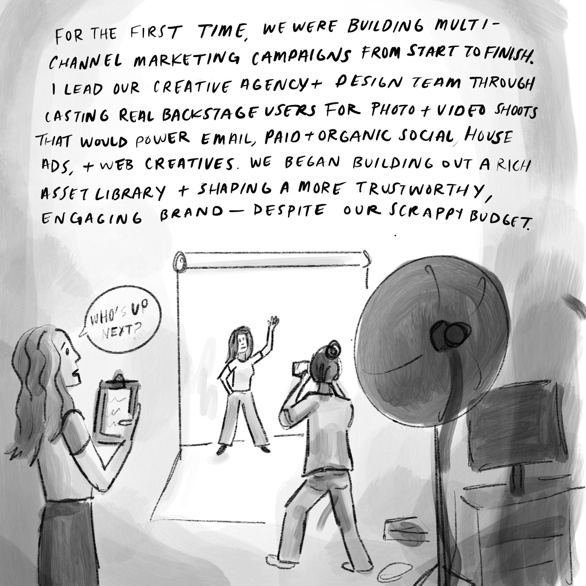 When I first joined Backstage, we had around 50k Instagram followers—now we’re nearing 600k. I played an instrumental role in encouraging our marketing team to take organic social seriously. At the time, it wasn’t a priority, but whenever I had a free moment, I was brainstorming post ideas and designing assets. Even small, strategic efforts led to immediate growth. Today, we have a dedicated social team that does an amazing job growing our presence across platforms, and our creative team continues to support with everything from one-off ideas to full content templates.